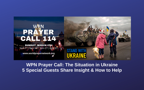 Our recent World Prayer Network call on Ukraine was profoundly moving. The five guests – Tera Dahl (helping to feed fleeing Ukrainians), Robert Kalatschan (has a ministry to orphans in Vietnam; his cousin is in Ukrakine), Denis Duvin (in Ukraine), Johnny Daniels, and Danielle Mor (trying to save Jews in Ukraine), along with additional video footage and pictures – were stunning to watch.