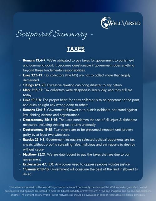 The reason that Well Versed exists is to bring Biblical principles of governance to government leaders, and the people who elect them. Our "North Star" is not the Republican or Democratic parties, or any other political party. Our ultimate and only source is the Scripture. That raises an obvious question: Does the Bible speak to the issue of taxes?