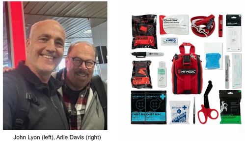 5. THIS IS FROM FRIENDS JOHN LYON AND ARLIE DAVIS (a fellow pastor/friend), WHO ARRIVED IN ISRAEL YESTERDAY, AND ARE DELIVERING “MY MEDIC” KITS IN SAMARIA: John sent me this picture of them. This medic kit is one that the IDF requested, complete with tourniquet, chest seals, quick clot, gauzes, NPA, shears, gloves and space blanket. These are designed to treat trauma injuries in the field. To continue supporting the IDF with these kits, please give here