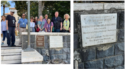 For you Wesleyans: My late father - Burtis Garlow - was so proud that the Wesleyans were able to get permission from the Catholics nuns at the convent at the location of Jesus’ Sermon on the Mount, to post this memorial in honor of the Wesleyan’s 1978 Jerusalem Conference. (I came here with my father once, in 1981.)It has become a tradition for some of us to gather for a group picture at the plaque each time we come to this sacred site.