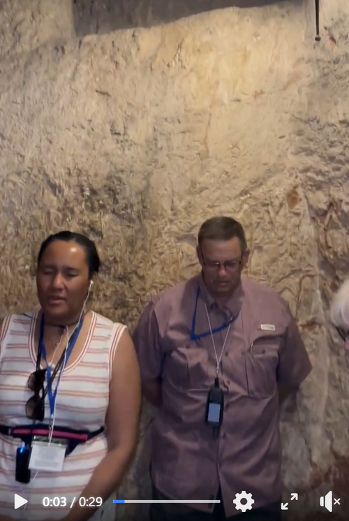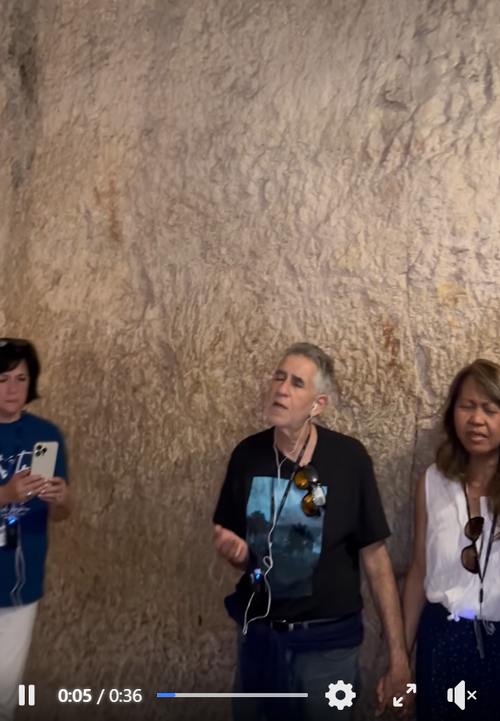 Today we were in Jerusalem in the dungeon where Jesus was held on the night before His crucifixion. That same group came out as we were ready to go in.