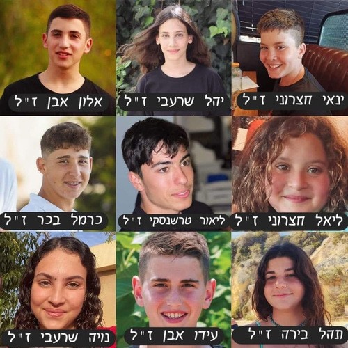 Barna fra kibbutz Be’eri som ble myrdet - 10 måneder gamle Mila Cohen er den eneste som ikke er på bildet. De er alle våre barn.
