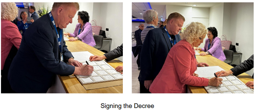 The Decree was also delivered by a group of about a dozen of us to the Israeli Mission (Embassy) to Israeli Ambassador Modi Ephraim and Deputy Head of Mission Yaron Wax.