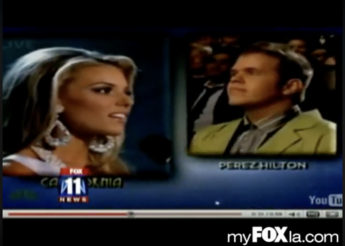 Carrie Prejean (left) and Perez Hilton (right)