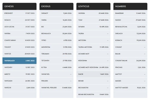 Schedule of all upcoming weekly readings from the Torah, the Prophets and the Gospels.